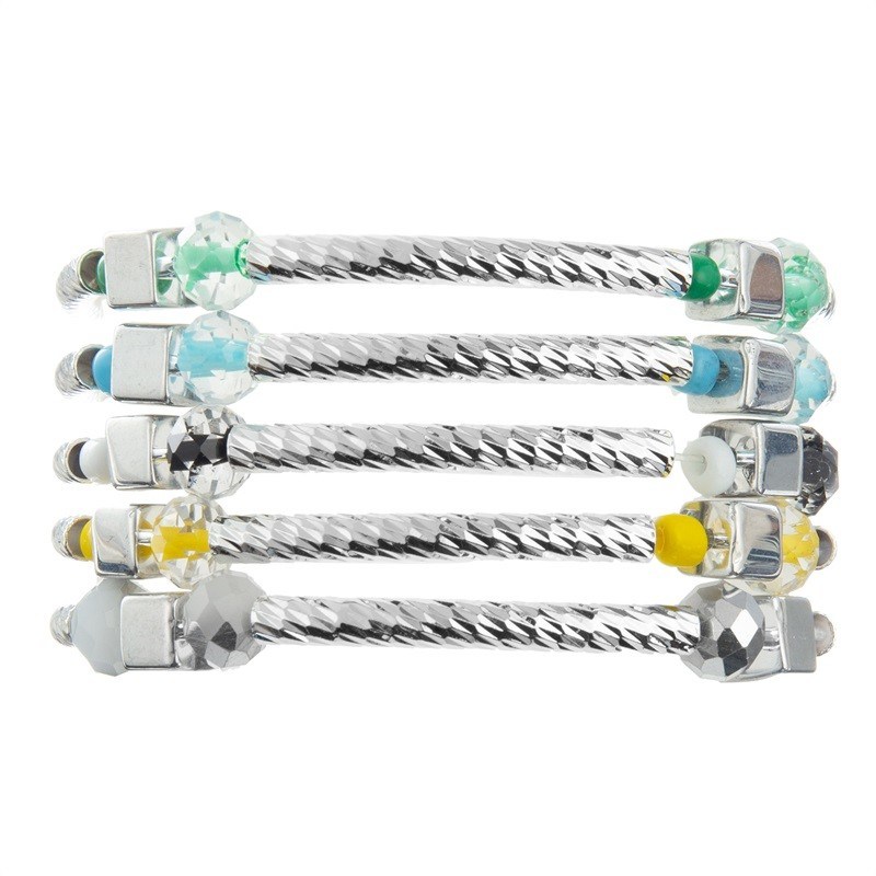 Ασημένιο σύνολο βραχιολιών χρώματος Stackable |